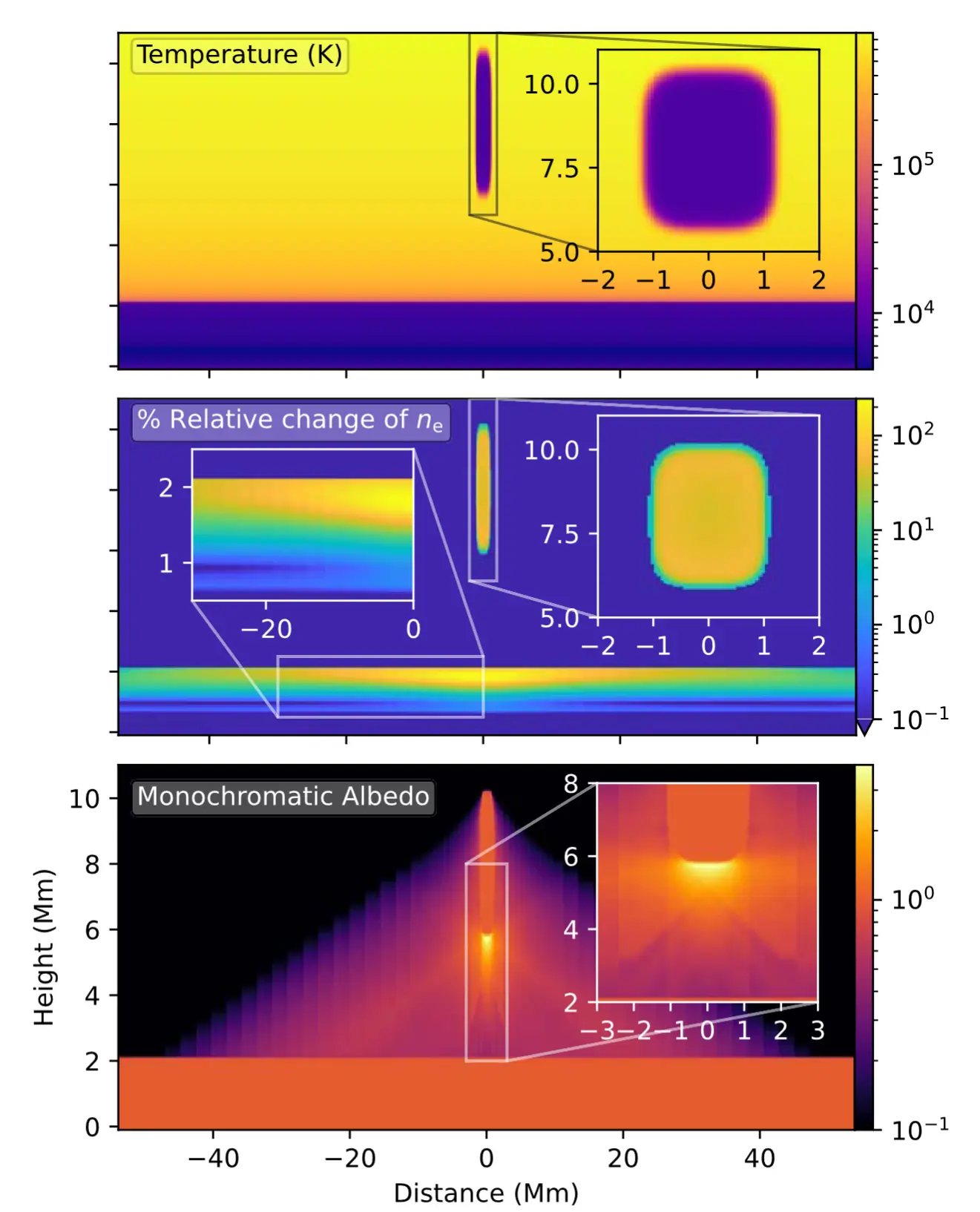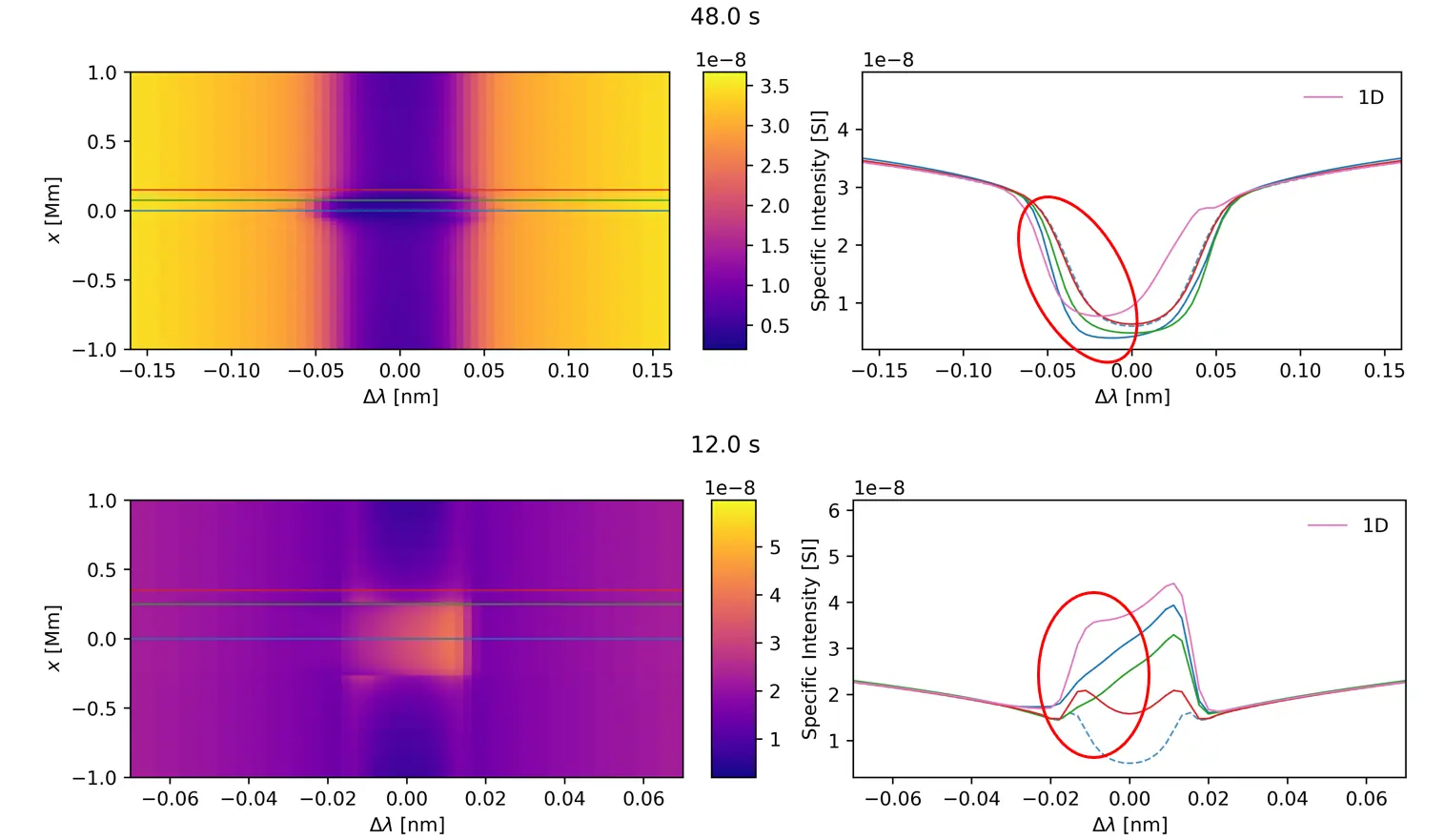 Intensity along cuts (red, green, blue), and equivalent plane-parallel model.